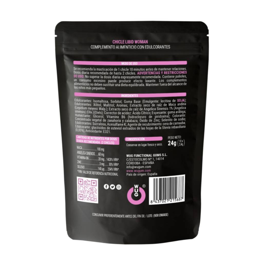 Οι Wug Sex Sense LIBID WOMEN Chicles είναι ειδικά σχεδιασμένες για να ενισχύουν τη διάθεση και τη σεξουαλική επιθυμία στις γυναίκες. Διακριτική γεύση και πρακτική συσκευασία 10 τεμαχίων, κάνουν αυτές τις τσίχλες την ιδανική συνοδεία για παιχνιδιάρικες και σαγηνευτικές στιγμές.